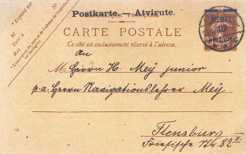 | Memel | 6.05 1920 | 1.04 1921 | 1.01 1922 | 1.07 1922 | 1.10 1922 | 15.11 1922 | 15.12 1922 | 15.01 1923 |